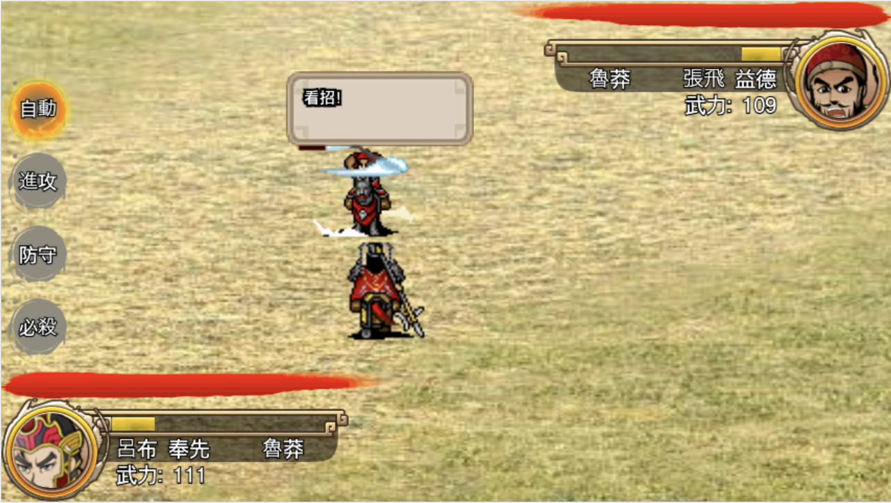 在戰鬥中,率領部隊的武將二人會發生「單挑」。