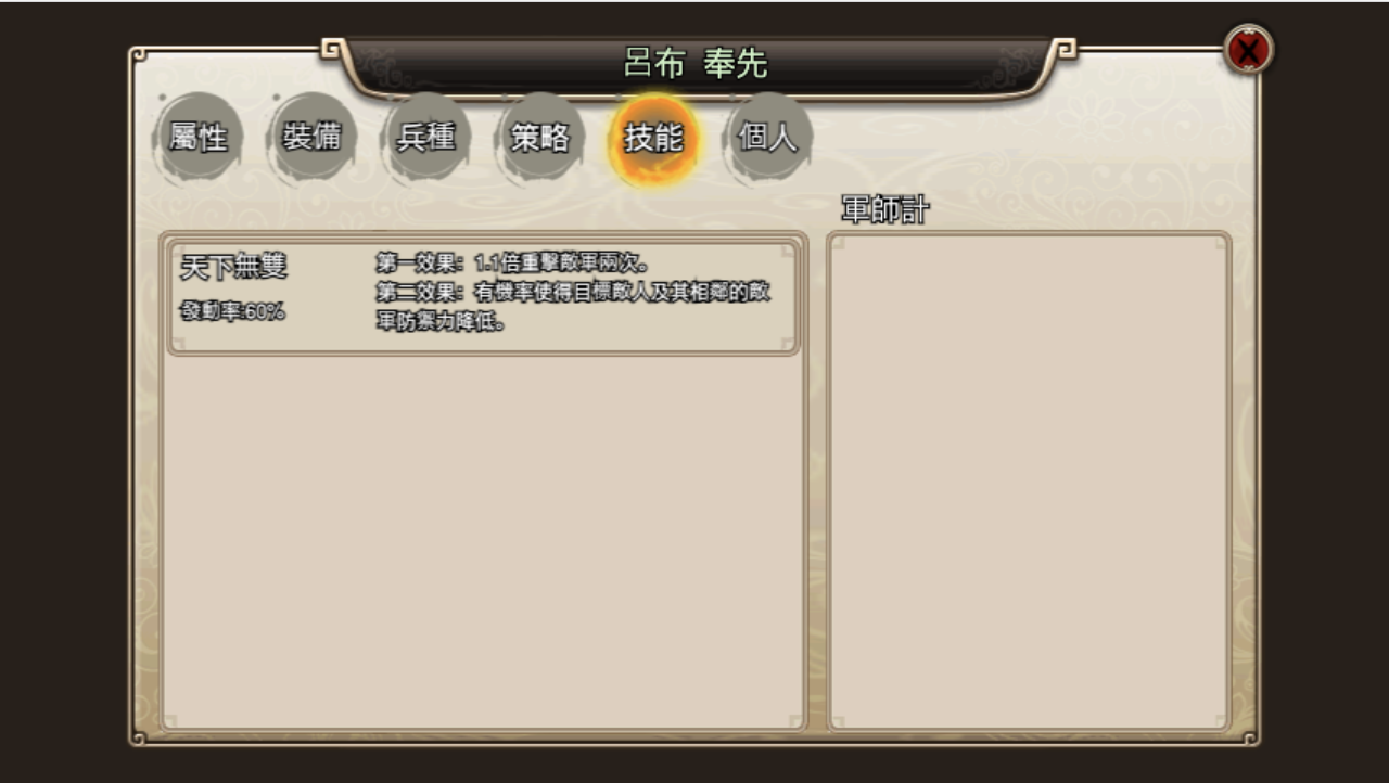 武將的能力對戰鬥的影響是很大的,擁有名將會以一當十。